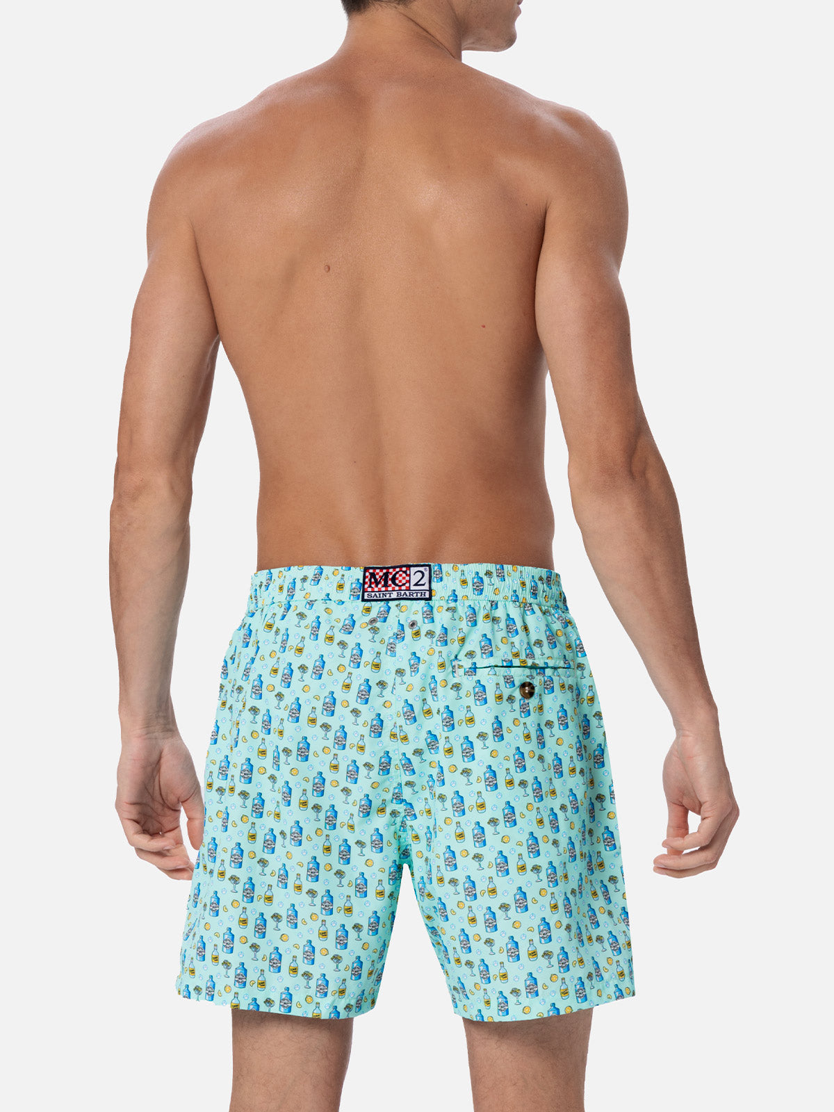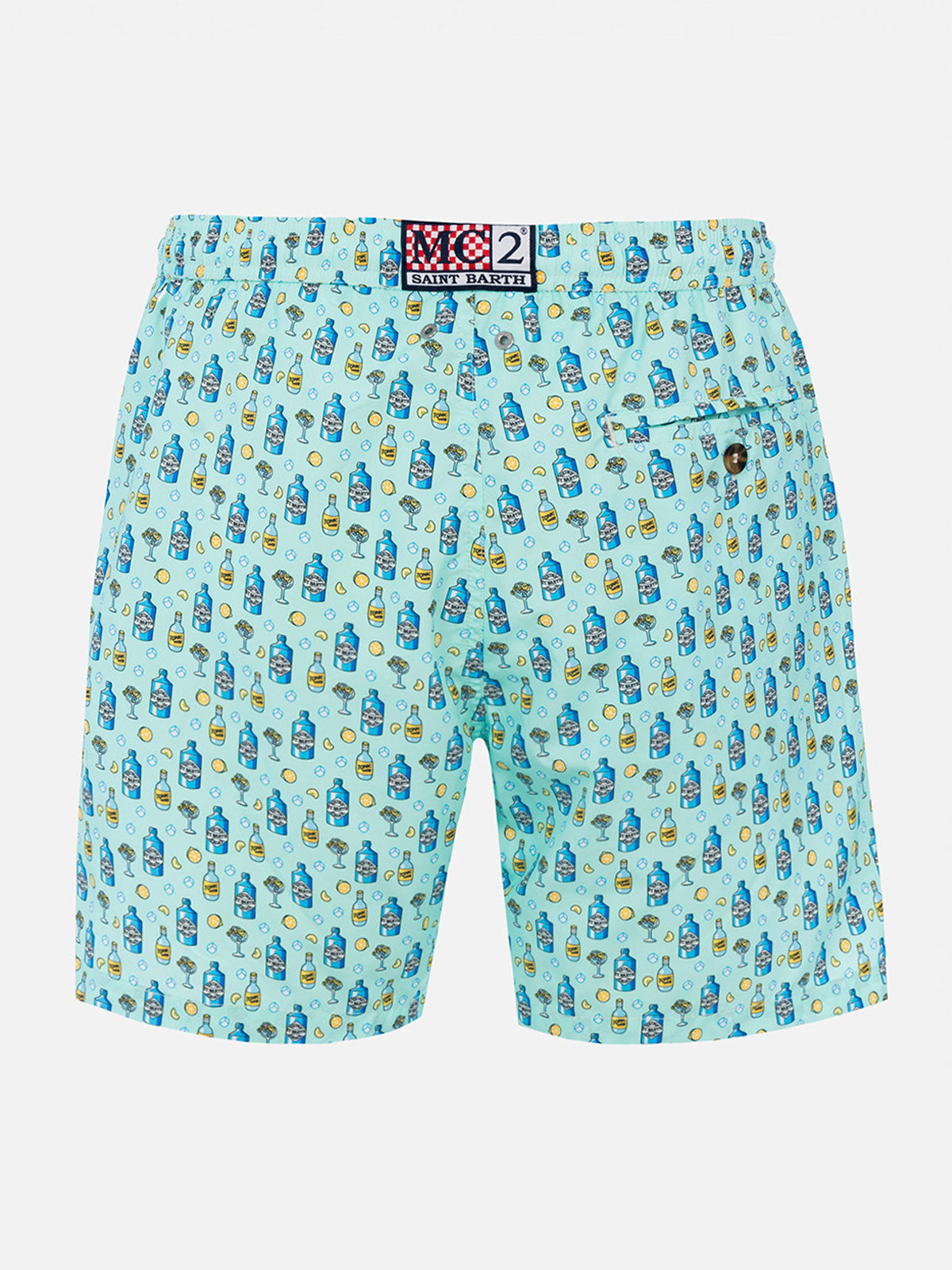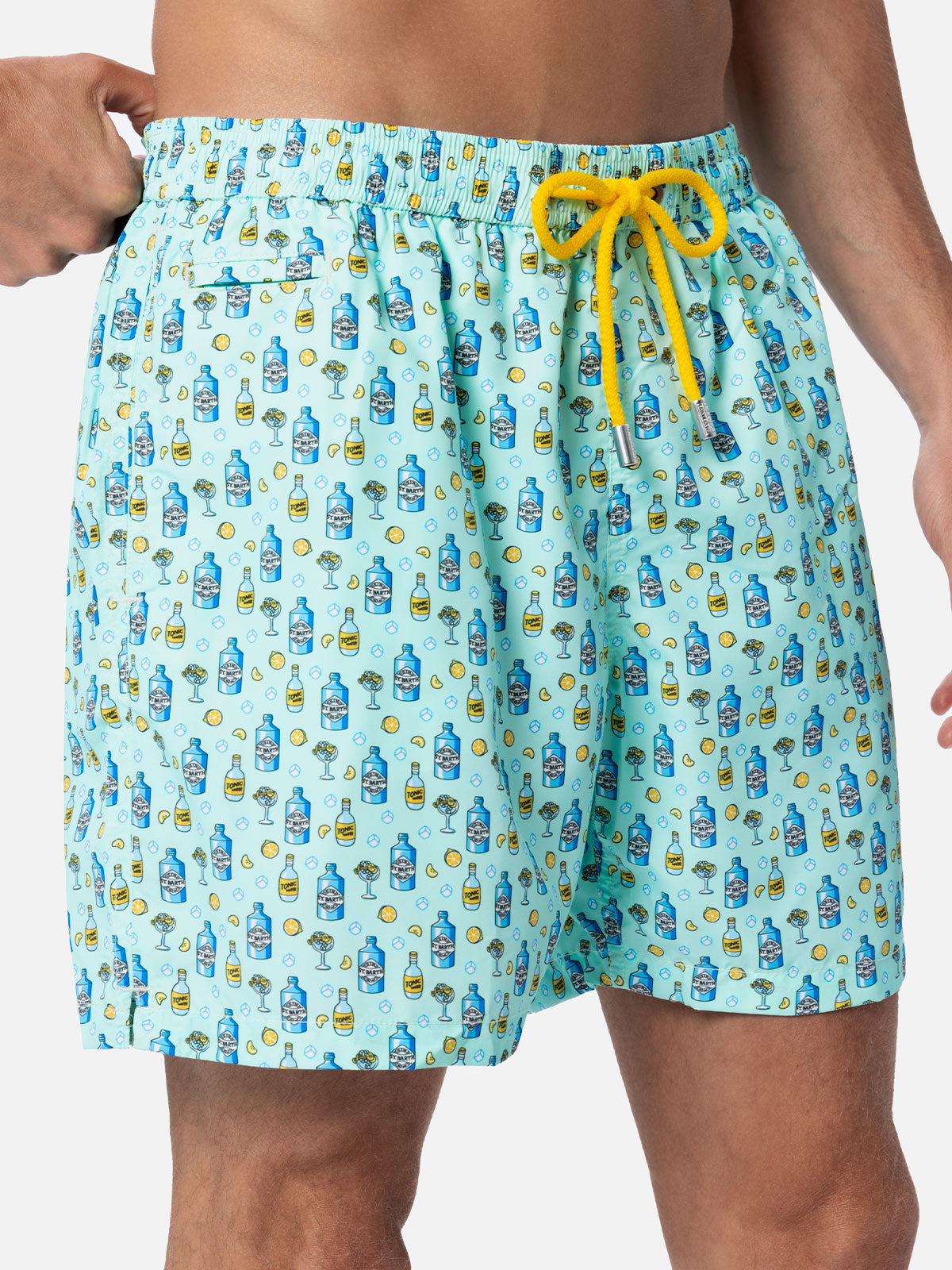 Man lightweight fabric swim-shorts Lighting Micro Fantasy with gin tonic print