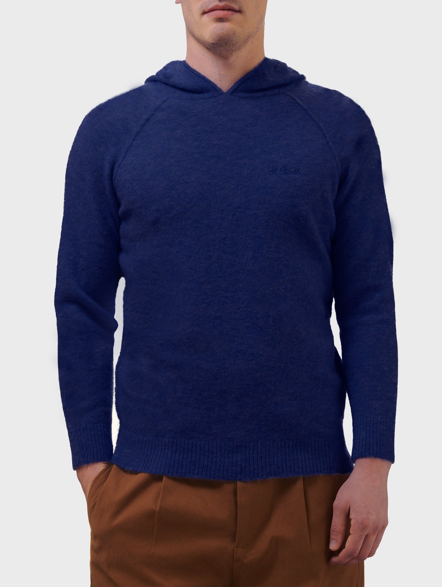 Man navy blue stretch alpaca hooded sweater Piccadilly