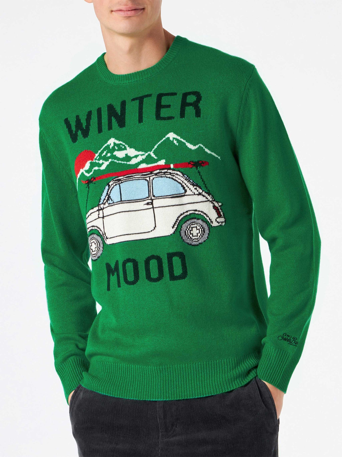 Man cashmere blend sweater with Fiat 500 jacquard | FIAT 500 SPECIAL EDITION