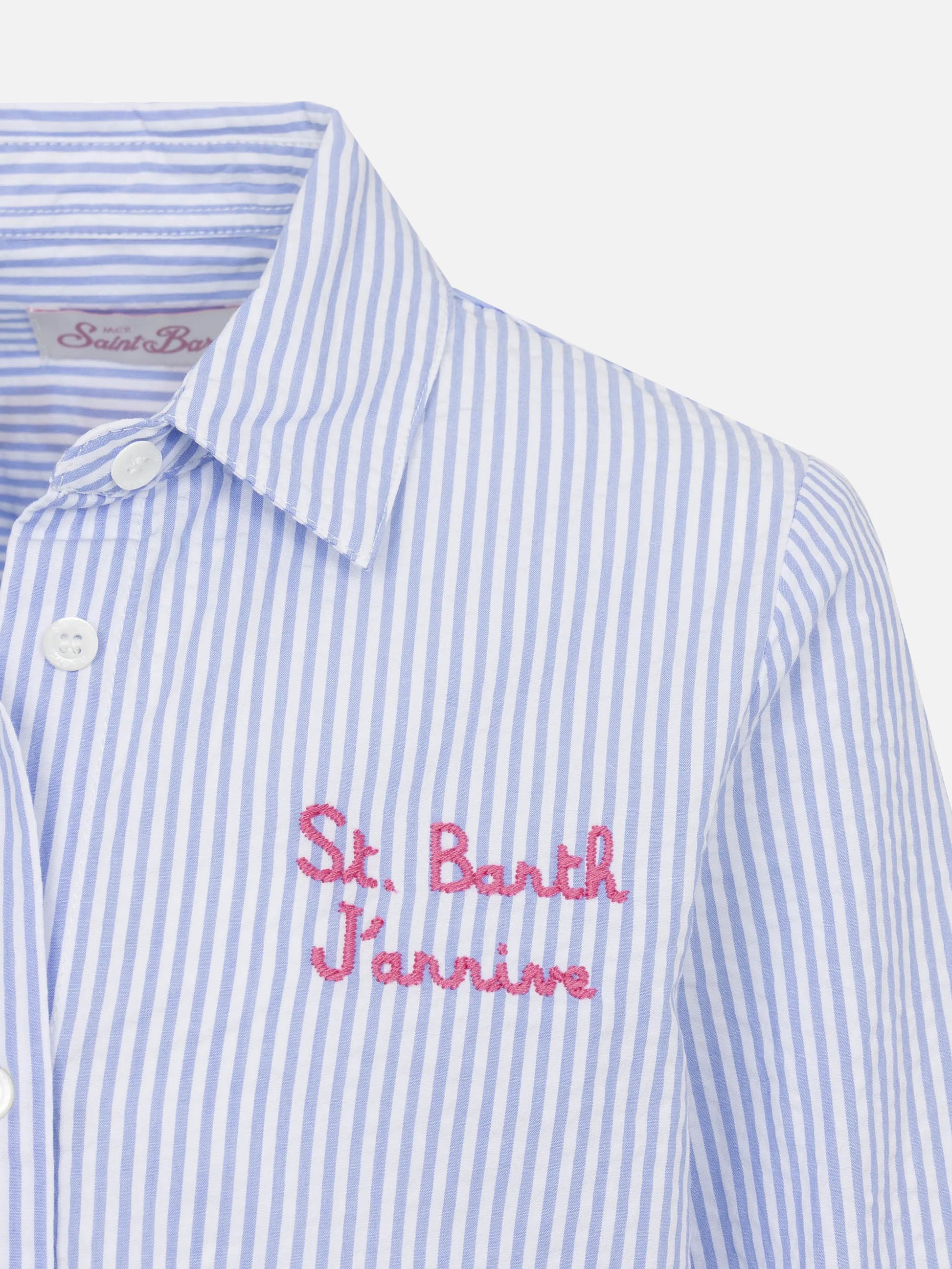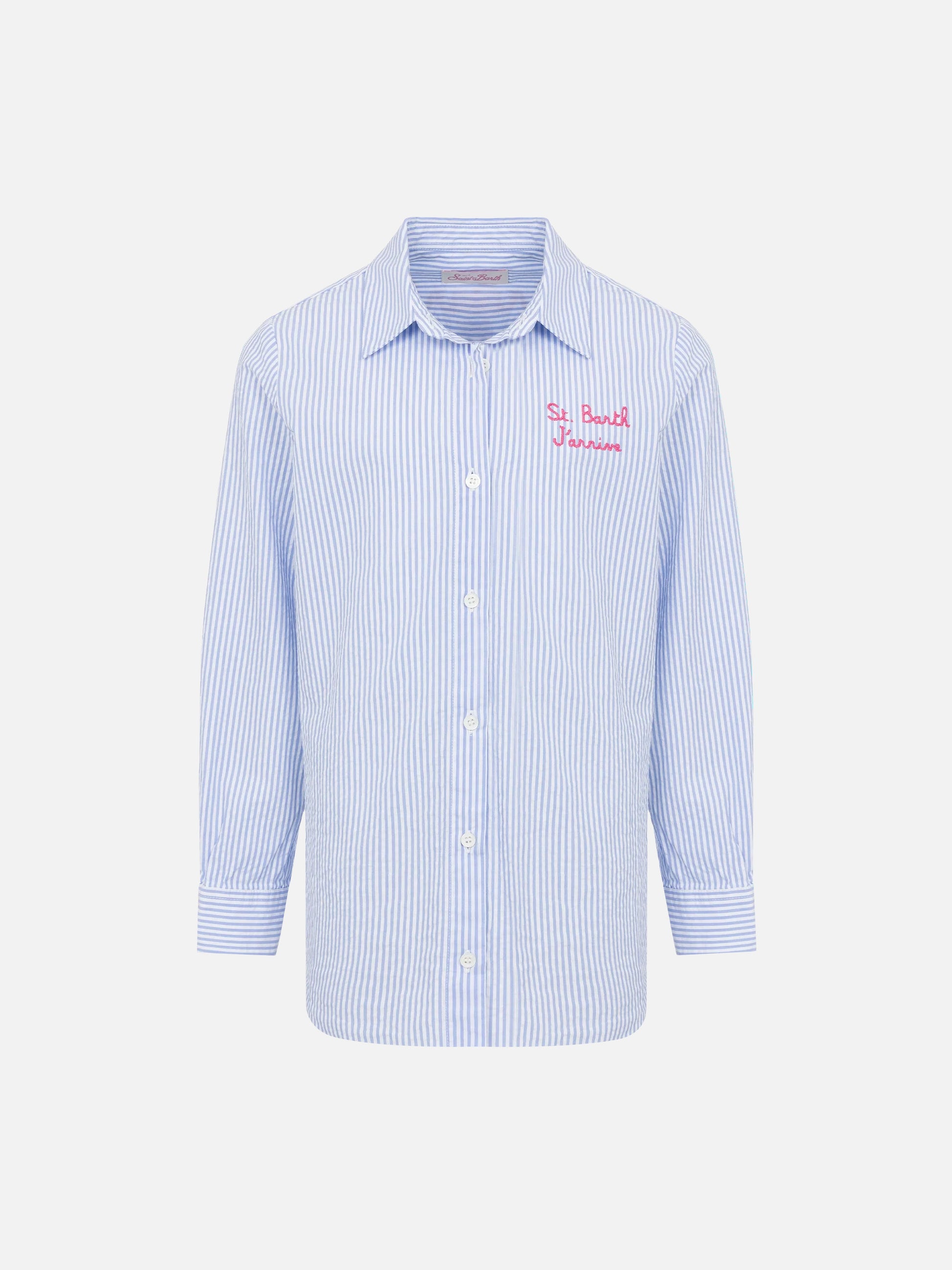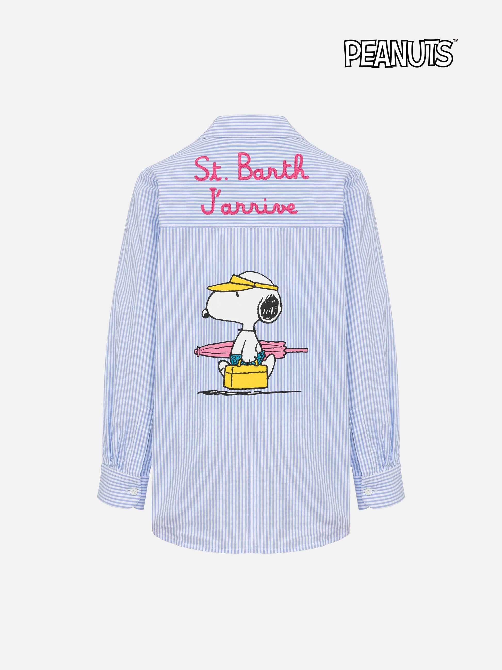 Mini Brigitte light blue striped seersucker shirt with Snoopy print | SNOOPY PEANUTS® SPECIAL EDITION