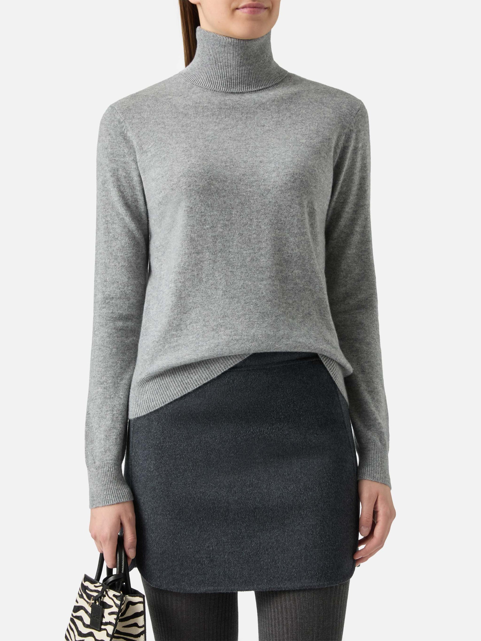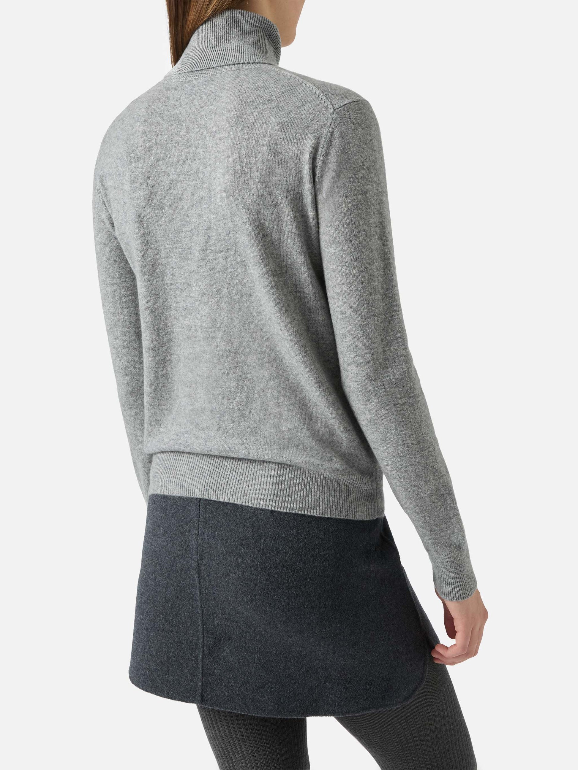 Moody turtleneck sweater in cashmere in grey melange with St. Barth embroidery