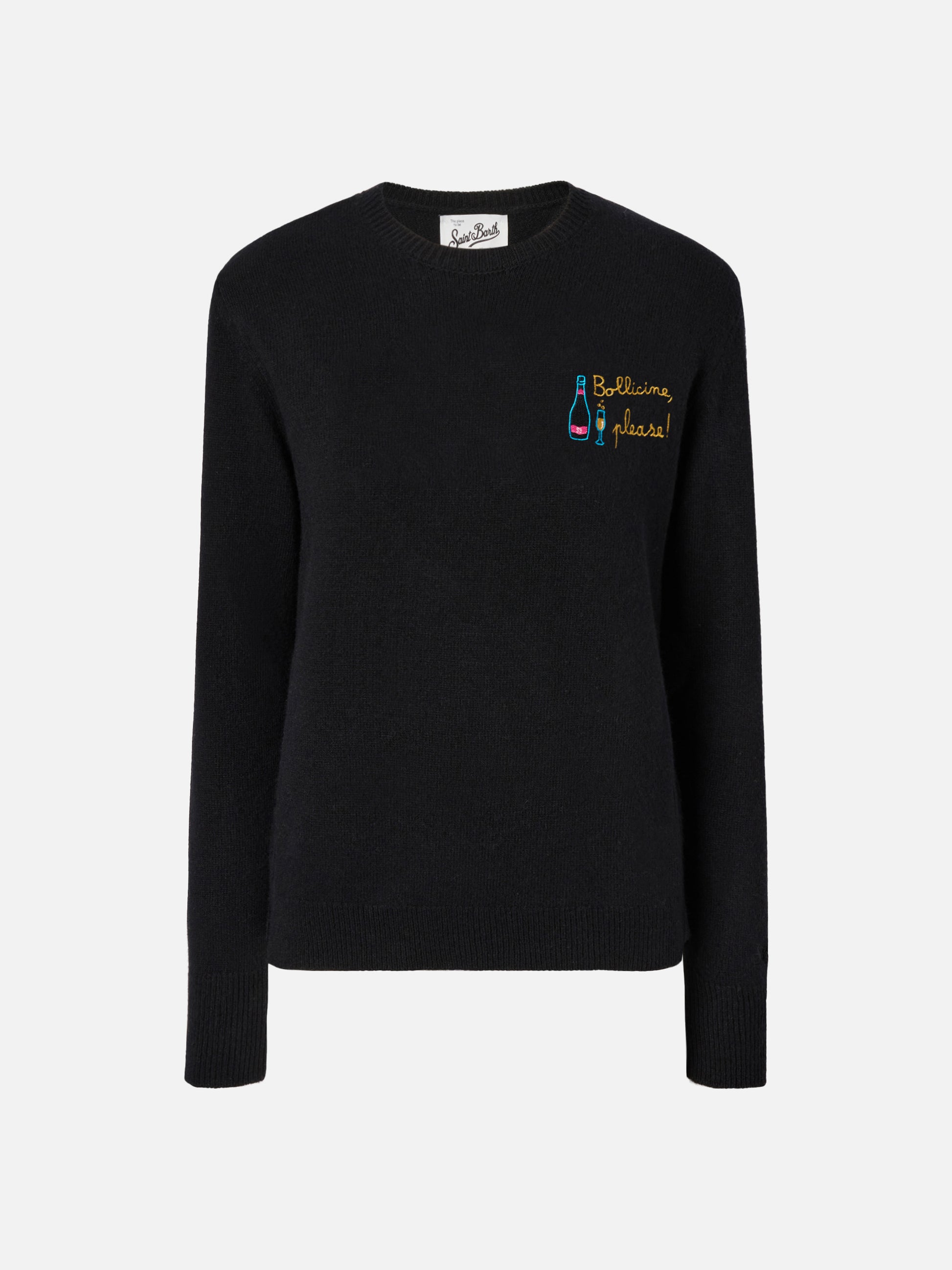 New Queen cashmere-blend sweater in black with Bollicine, please embroidery