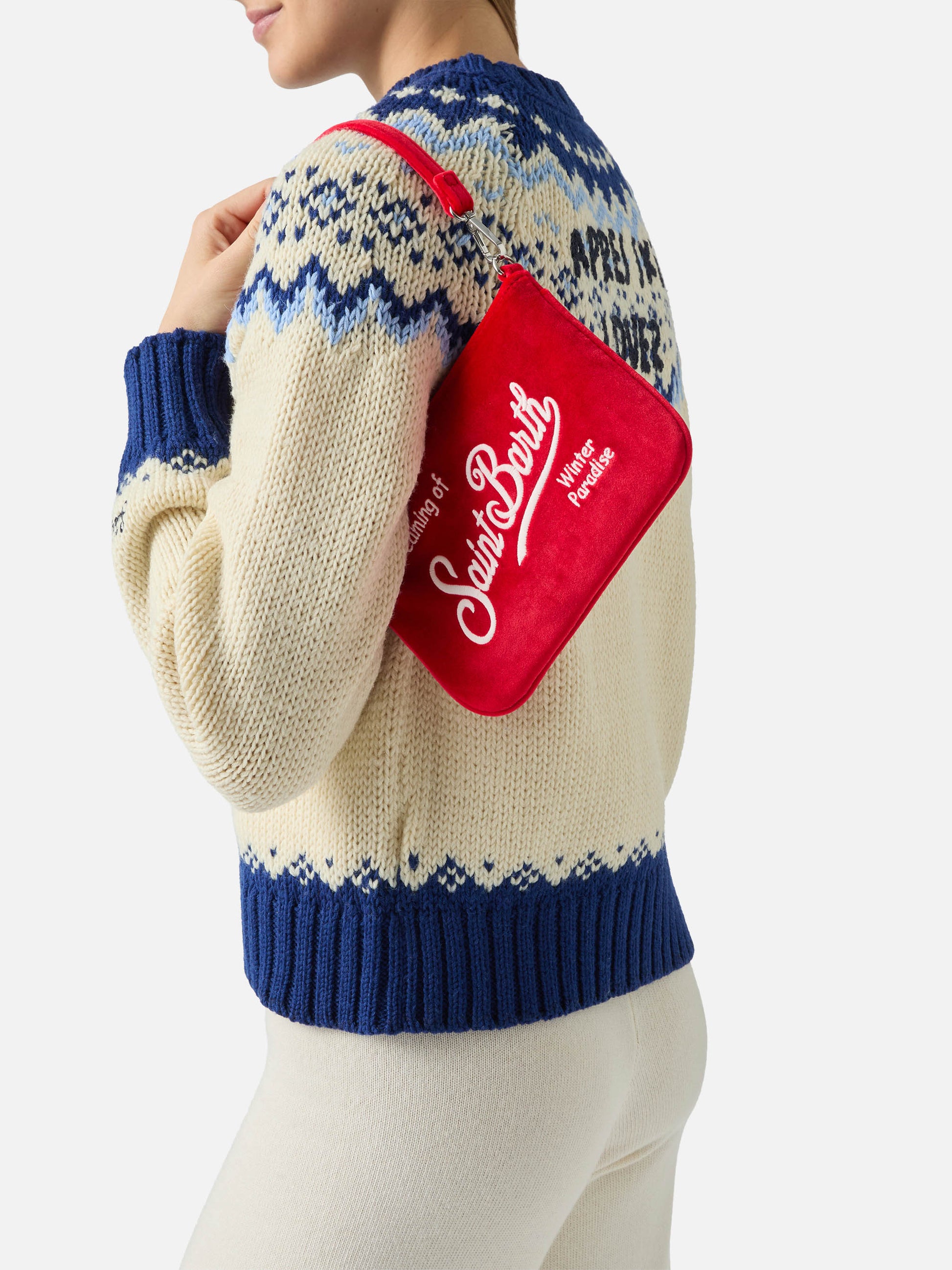 New Queen cashmere-blend sweater in white with postcard jacquard and embroidery