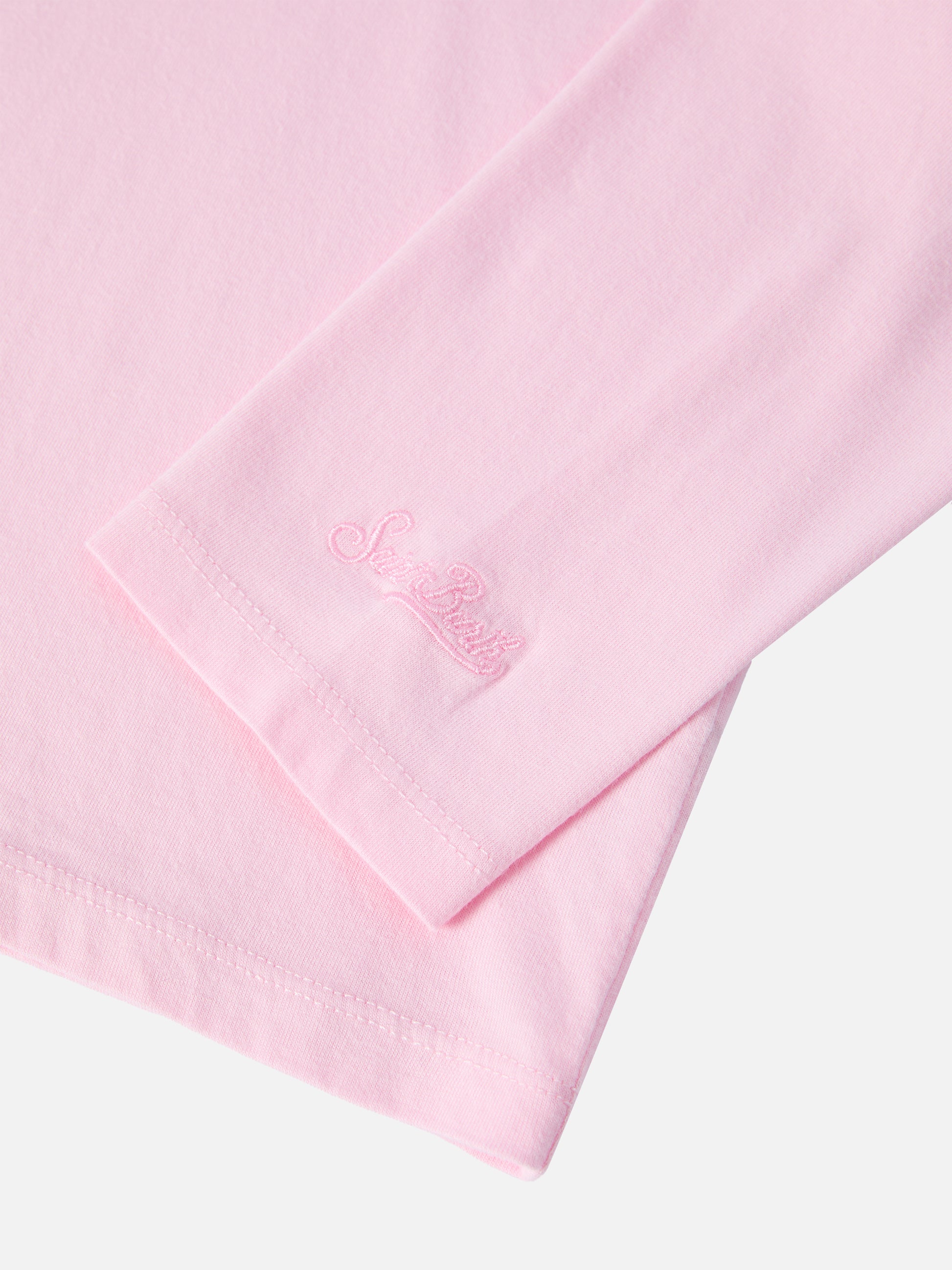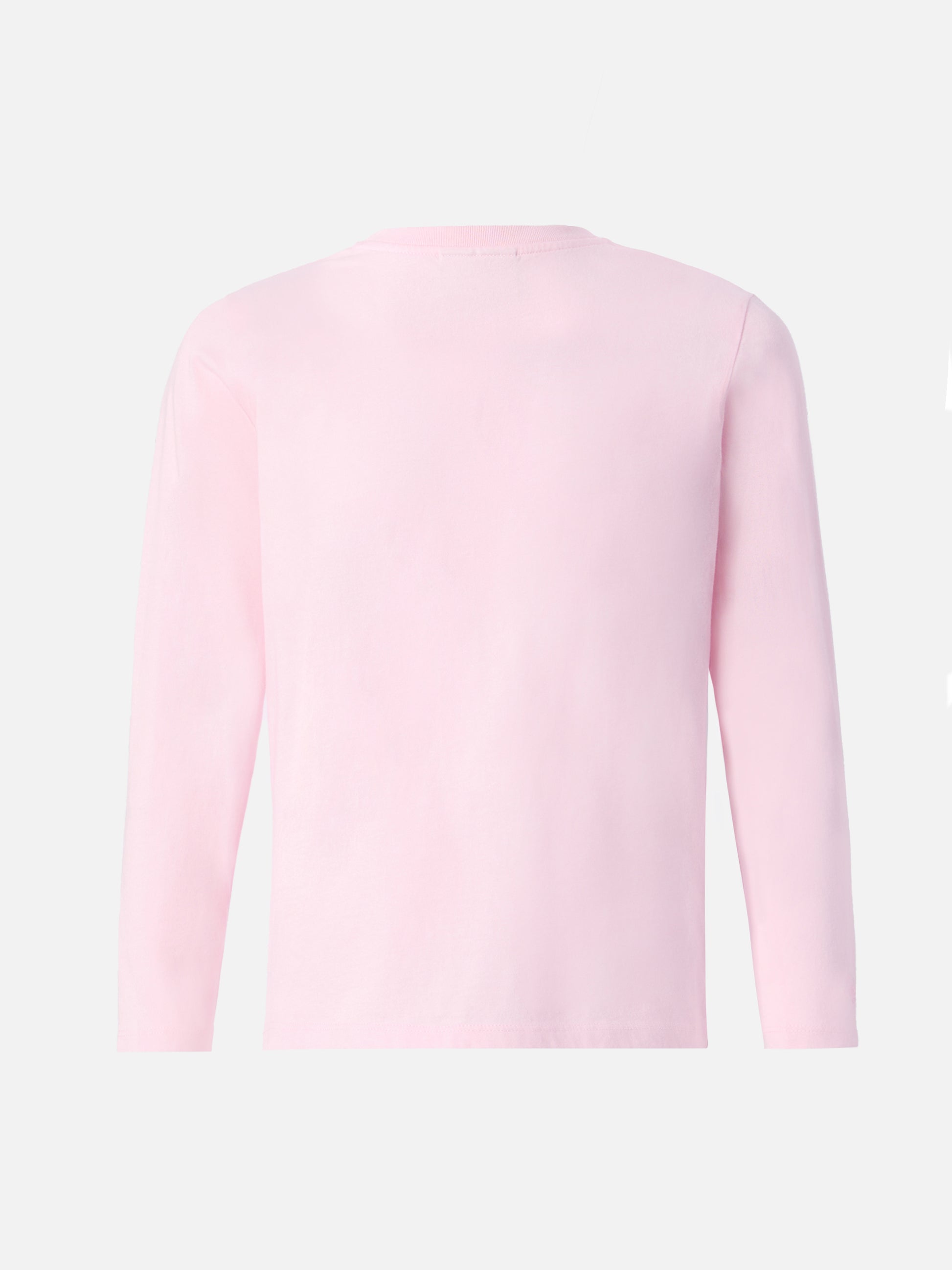 Penny long-sleeve cotton T-shirt in pink with Bella e Monella embroidery