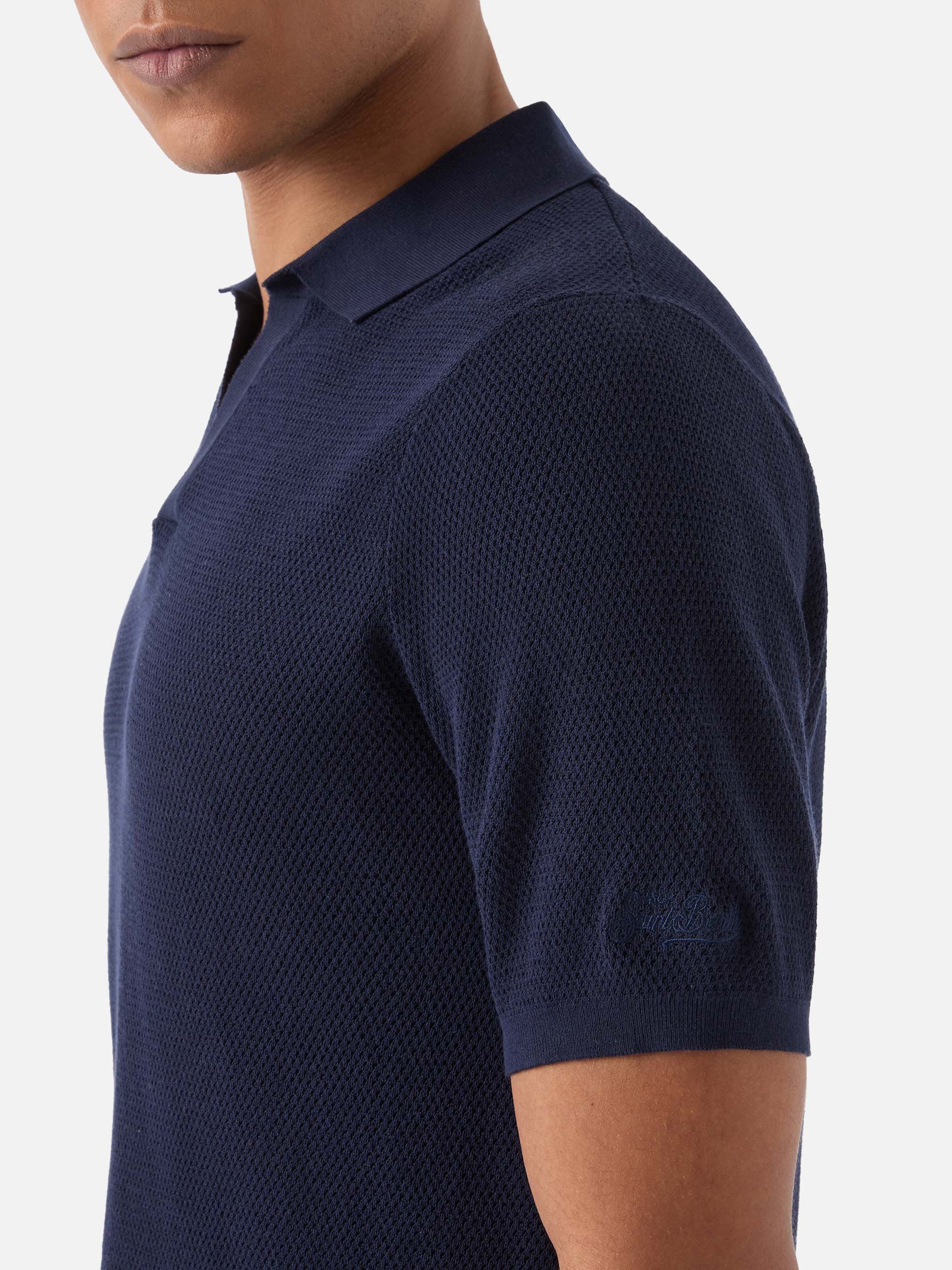 Sloan Mesh blue polo in premium high-twist cotton