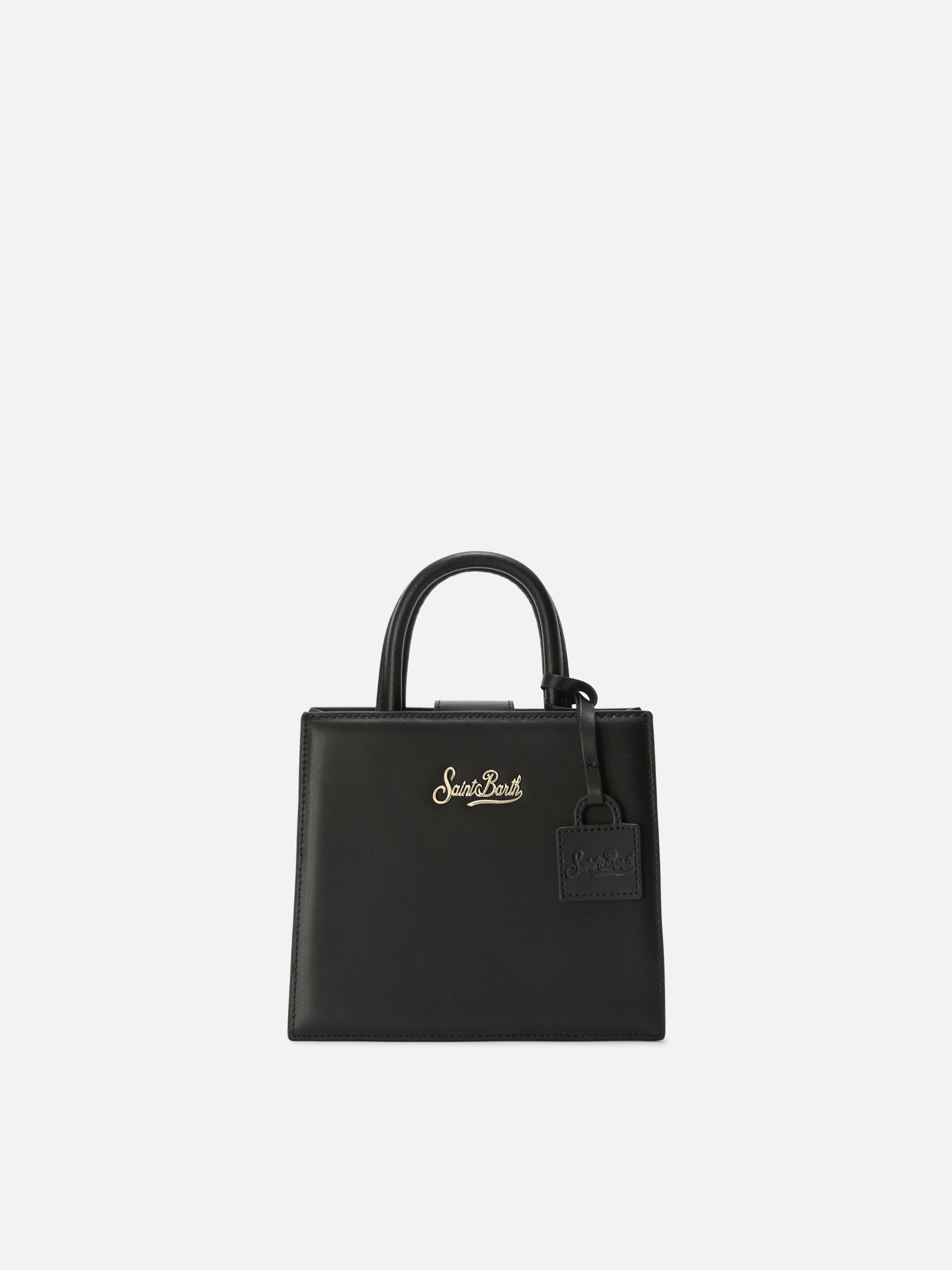 Structured Shop mini bag in black smooth leather with metal tag