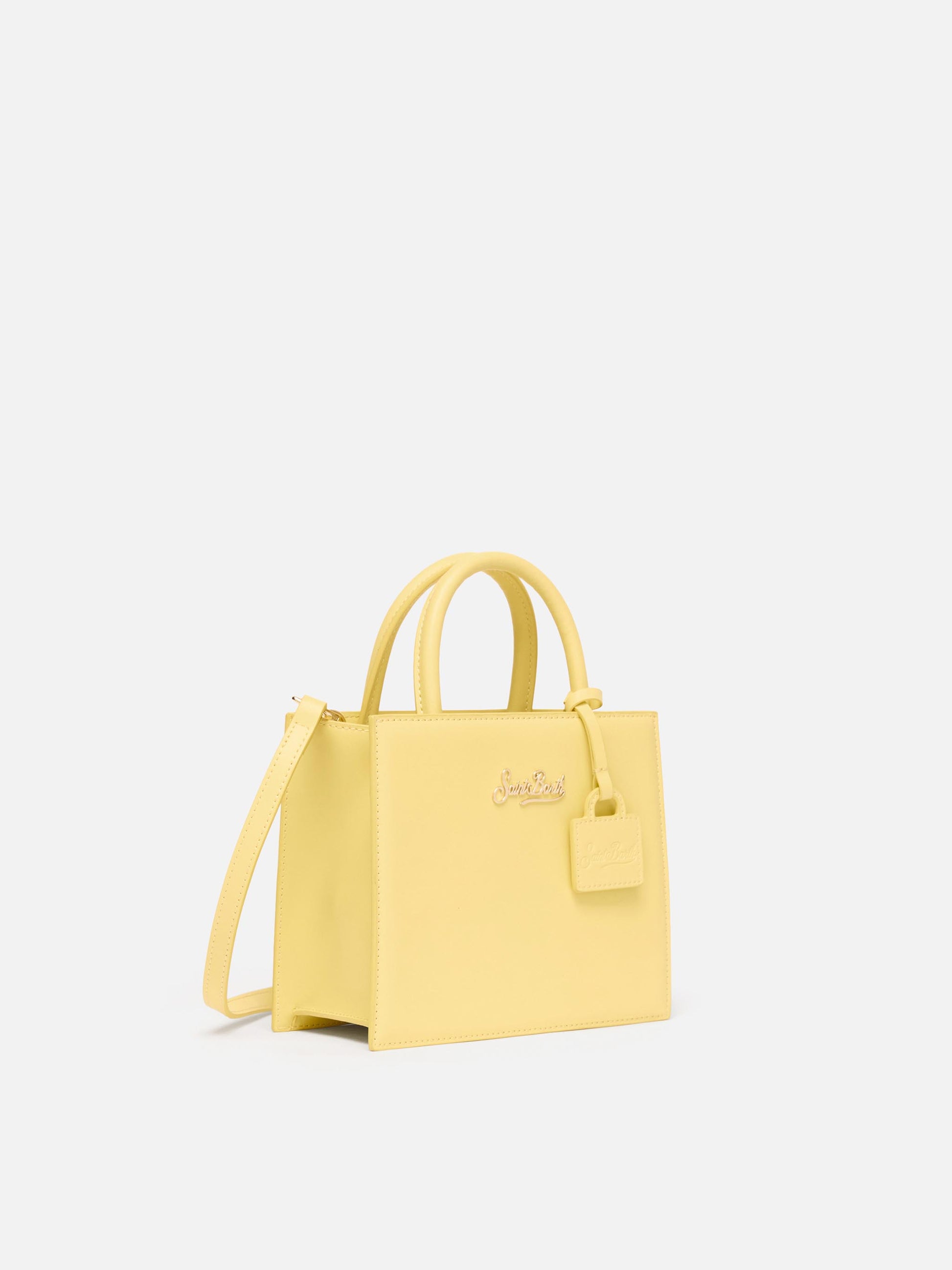 Structured Shop mini bag in butter yellow smooth leather with metal tag