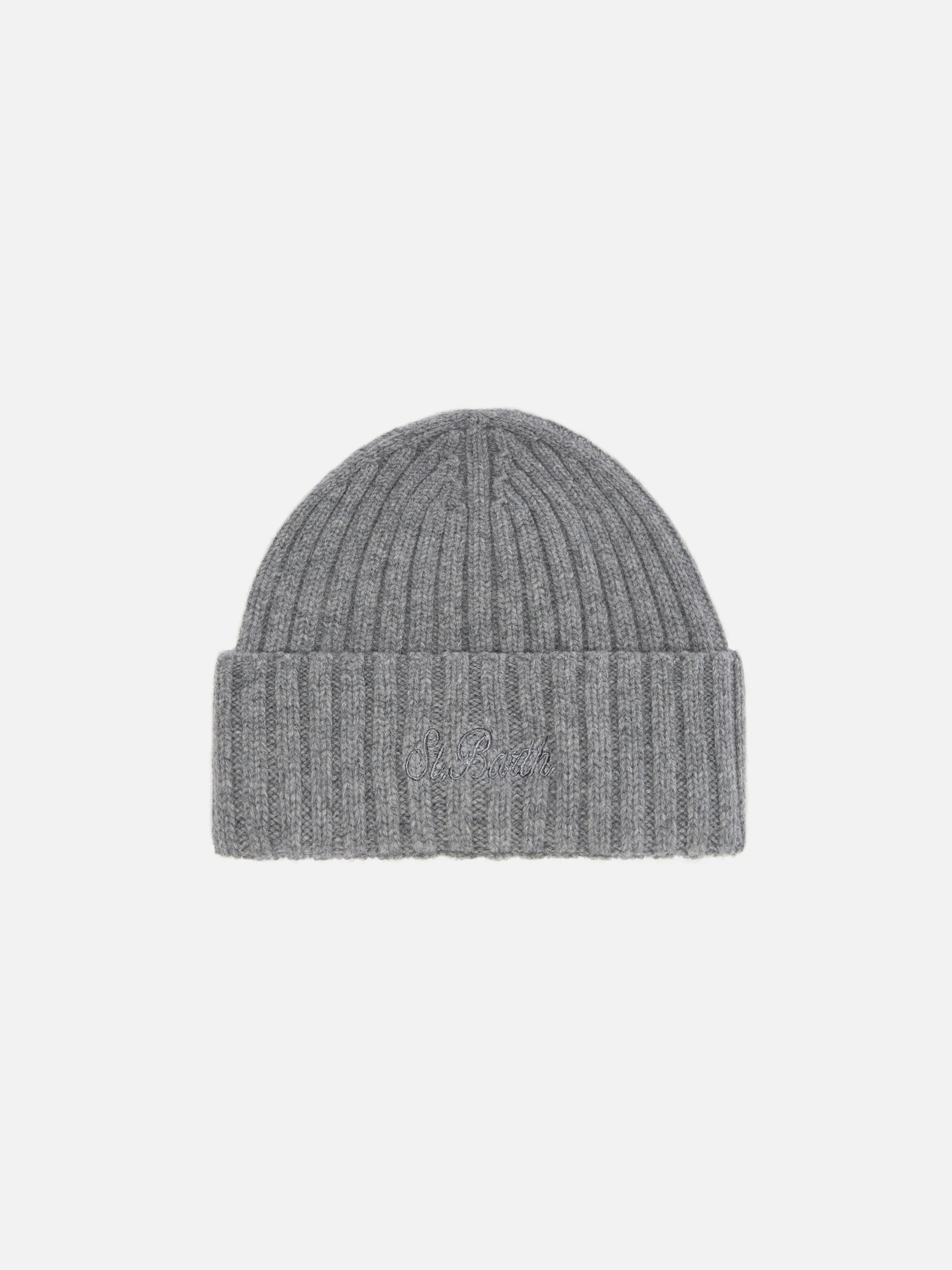 Wengen beanie in grey melange wool with St. Barth embroidery on the turn-up