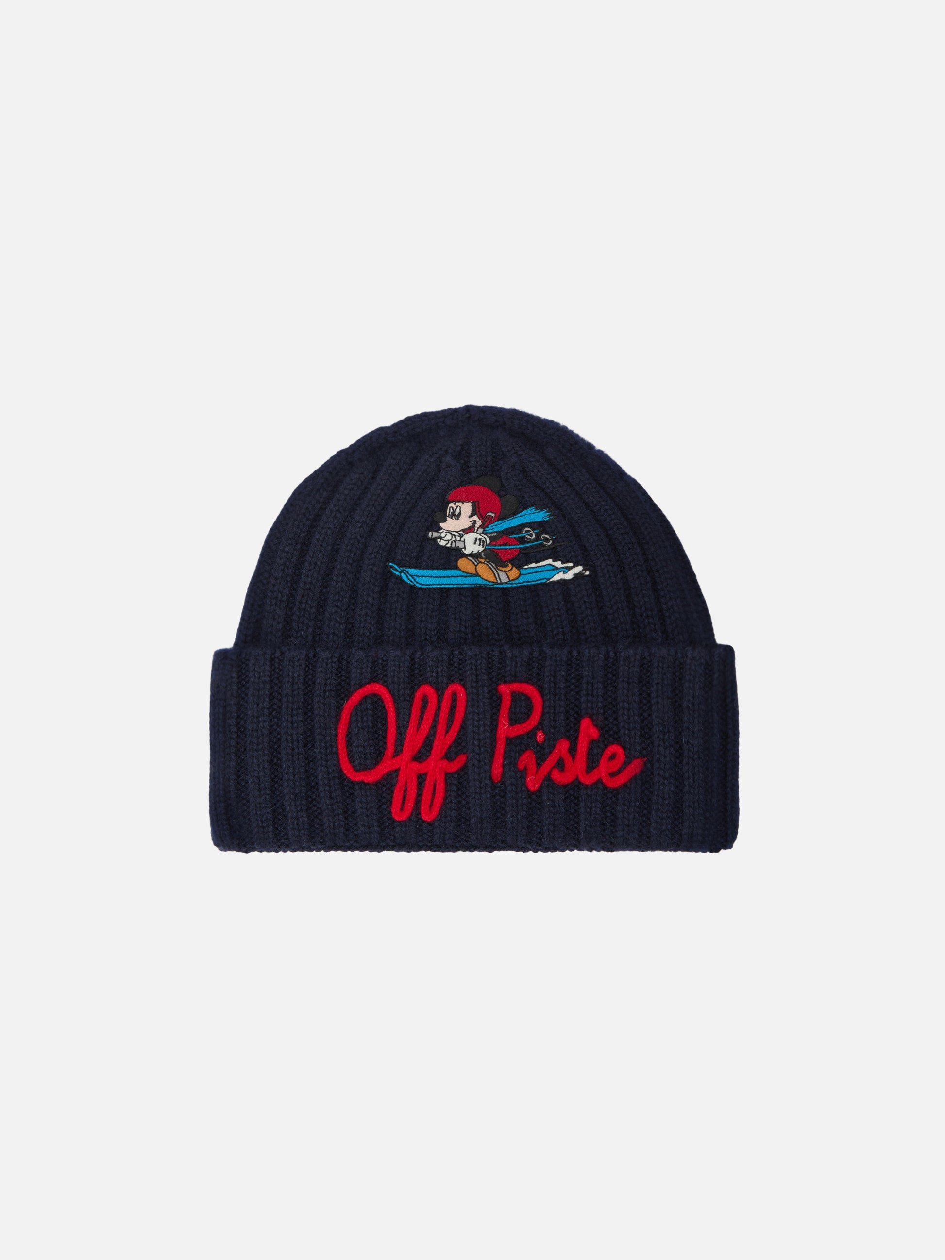 Wengen Jr beanie in cashmere blend with Mickey Mouse patch and Off Piste cordonetto embroidery