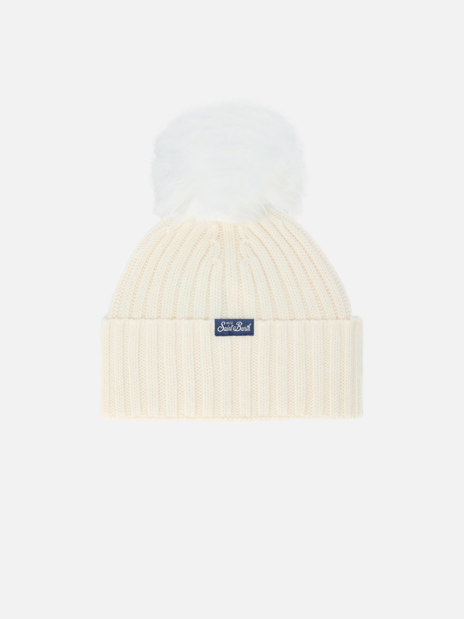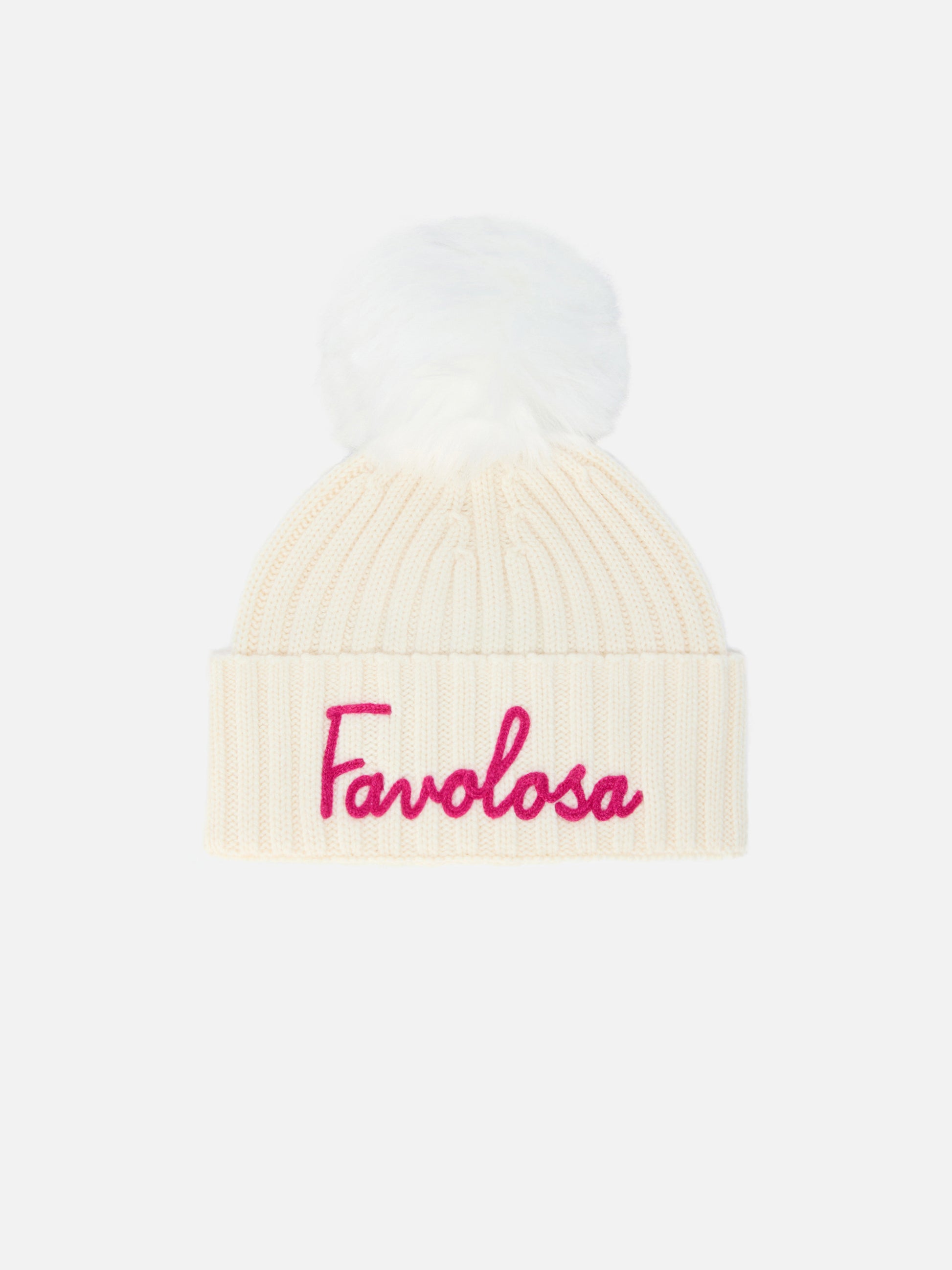 Wengen Jr F Favolosa is a soft beanie with pom-pom for playful, cozy looks: ribbed cashmere blend, perfect for school and weekends. The Favolosa embroidery adds a bright, statement touch.